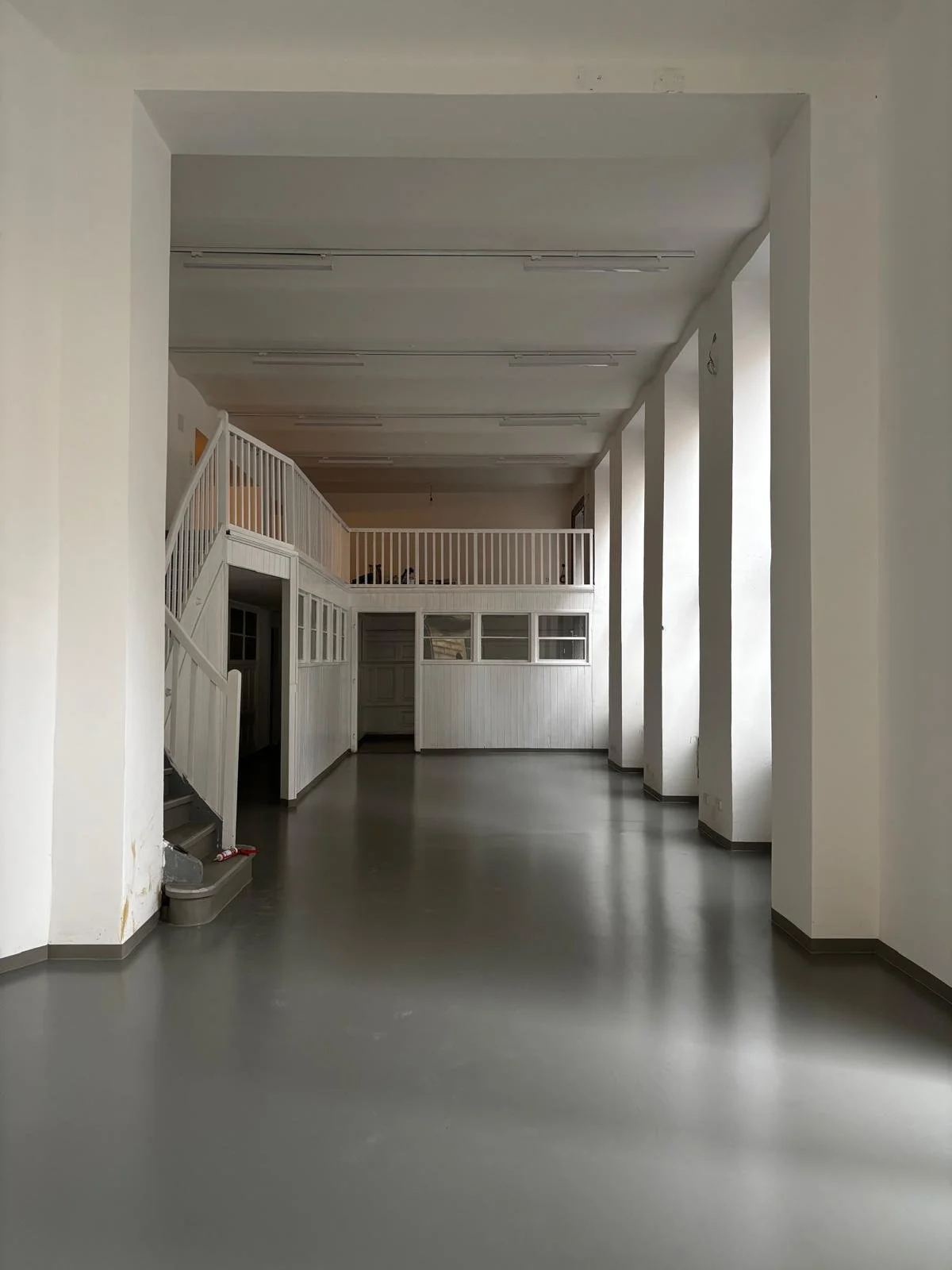 Soundanlage, Tische, Stühle, Kaffeemaschine, Wasserkocher, Kühlschrank, Geschirr